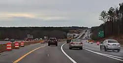 The process of completing the final segment was sped up after the N.C. Turnpike Authority (NCTA) was able to get a single environmental permit, allowing for utility work to begin. That coupled with strong local support and expected toll revenues moved the project up NCDOT's list of priorities and the bidding process for the segment began much earlier than anticipated in Summer 2023.[57] The work was to be done in two sections; the first one would be from south of Rock Quarry Road northward to the I-540/I-87/US 64/US 264 interchange while the second one would be from I-40/US 70 (future I-42) to south of Rock Quarry Road.[58] In September 2023, it was announced that Flatiron-Fred Smith Company Joint Venture had been awarded a $450 million contract to complete the first segment;[57][58][59] S.T. Wooten-Branch Civil joint venture was awarded a $287 million contract for the second segment in October 2023.[58][60] In December 2023, the Local Government Commission (LGC) approved an application by the NCTA for revenue bonds and a Transportation Infrastructure Finance & Innovation Act (TIFIA) loan through US-DOT to start construction.[61] Construction began with a groundbreaking on May 16, 2024. Completion of the final segment is expected in 2028.[62][58]