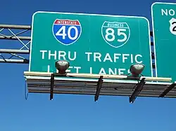 | Continuation beyond northern terminus; north end of I-40 overlap; I-85 exit 131 | ||||||