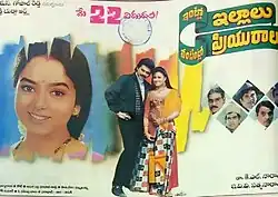 Intlo Illalu Vantintlo Priyuralu (transl. Wife at home, Lover in the kitchen) is a 1996 Indian Telugu-language comedy drama film directed by E. V. V. Satyanarayana and produced by K. L. Narayana under the Sri Durga Arts banner. It stars Venkatesh, Soundarya and Vineetha (in her Telugu debut) with music composed by Koti.[1] The film was successful at the box office.[2] The film was a remake of Tamil film Thaikulame Thaikulame.