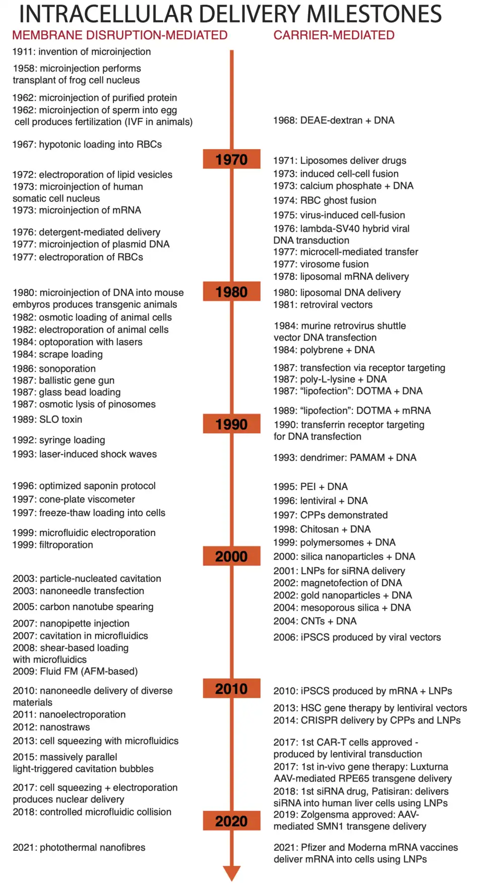 Current methods of intracellular delivery can be placed into two broad categories: