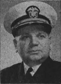 - ^ Died of a heart attack on board his flagship Rocky Mount off Borneo, June 1945.