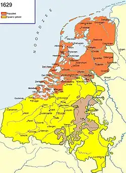 ![]() Territorial situation of the Eighty Years' War, just before the Siege of 's-Hertogenbosch | |||||||