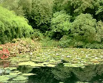 In summer the walled garden and borders come into their own with many exotic plants from all over the world which grow here thanks to the influence of the North Atlantic current.[1] Even in winter Inverewe is colourful as the bark of many rhododendrons is beautifully and delicately coloured and the collection of native and non-native trees, including Wollemi trees, add to the variety.