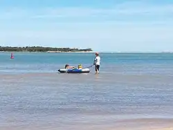Anderson Inlet is a shallow and dynamic estuary where the Tarwin River enters Bass Strait. It forms a 2,400 hectare almost-enclosed bay next to Inverloch, for which it provides a popular and protected beach. At low tide its intertidal mudflats provide important feeding habitat for migratory waders. It is named after the Anderson brothers, the first Europeans to settle in the area.[6][7] Anderson Inlet is classified by BirdLife International as an Important Bird Area. It supports internationally significant numbers (over 6,000) of red-necked stint. It has also been known to support the critically endangered orange-bellied parrot, with six birds seen there in 1998 and two in 1999.[8] Seashell collecting is permitted from The Caves (beach) to the north-east, past the main shopping precinct. Seashell collecting is prohibited in the Bunurong Marine National Park, namely The Oaks, Twin Reefs, Shack Bay and Eagles Nest (beaches), heading south-west after Flat Rocks and The Caves.[9]