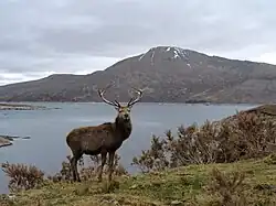 Ben Nevis, the tallest peak in Britain, is located to the east of Fort William. The west coast consists of a number of peninsulas divided by long sea loch inlets; north to south these are the Glenelg peninsula (shared with Ross-shire), Loch Hourn, Knoydart peninsula, Loch Nevis, North and South Morar/Arisaig peninsula, Loch Ailort, Moidart peninsula and Loch Moidart.[30] The west coast of Inverness-shire was traditionally referred to as the Rough Bounds due to its remoteness and inaccessibility. It remains wild and sparsely populated today.[37]