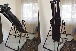 Inversion therapy, or simply inversion, is the process of seeking therapeutic benefits from hanging by the legs, ankles, or feet in an inverted angle or entirely upside down. It is a form of spinal traction.[1] Gravity boots are ankle supports designed for inversion therapy.[2] Some people use gravity boots to add an extra challenge to workouts, doing inverted crunches or squats.[3]