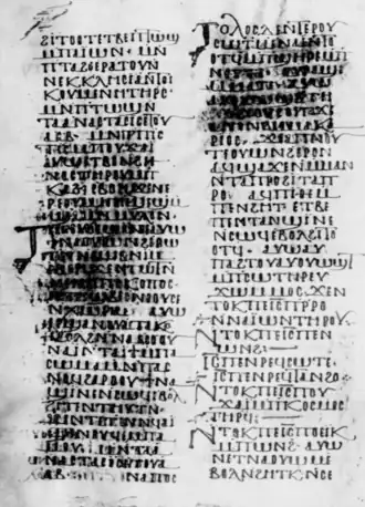 The only complete surviving manuscript is M.593, found near the ruins of the Monastery of St. Michael in 1910–1911 in the southern part of the Faiyum province, Egypt. It is pages 61–100 of the manuscript and follows the similarly titled Investiture of the Archangel Michael (pages 1–60). The manuscript was purchased by agents of J. P. Morgan and became part of the Morgan Library & Museum. According to the colophon of the manuscript, it was copied in 892/893 CE (Year of the Martyrs 609 in the Coptic calendar, counting from the persecution of Diocletian) by "John the Psalmist" and dedicated to a monastery of the Archangel Michael at Phantau. Two small fragments of the work are preserved in another manuscript held by the Morgan Library, M.668.[1]