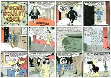 Originally published by the Chicago Daily Times and distributed by its syndication service,[1] Invisible Scarlet O'Neil began on June 3, 1940. In September 1949, the title of the strip was reduced to simply Scarlet O'Neil, and her invisibility powers were seen much more rarely.[4]