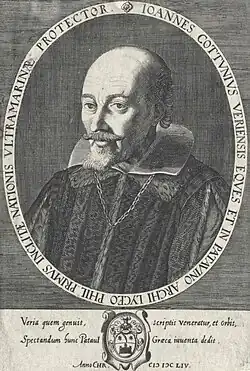 Ioannis Kottounios (Greek: Ἰωάννης Κωττούνιος, Latin: Joannes Cottunius de Verria; c. 1577[1] – 1658) was an ethnic Greek scholar who studied philosophy, theology and medicine, taught Greek[2] from 1617 and philosophy[2] from 1630 in Bologna, Italy becoming professor of philosophy in 1632[3] he also founded a college for unwealthy Greeks at Padua in 1653.[4]
