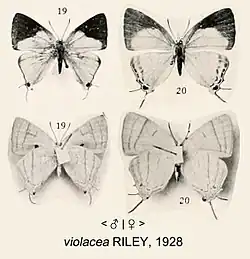 Iolaus violacea, the violaceous sapphire, is a butterfly in the family Lycaenidae. It is found in Angola, the Democratic Republic of the Congo (Shaba and Tanganika), north-eastern Zimbabwe, Zambia, Malawi, Tanzania (Ukerewe Island and Lake Victoria) and possibly western Mozambique.[2] The habitat consists of Brachystegia woodland.