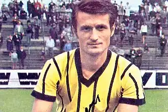 In October 1967 Rapid played a friendly game against Alemannia Aachen in which Ionescu scored two goals and in December, Romania's national team played a friendly against Aachen in which Ionescu netted three goals.[6][15] These five goals impressed the leaders of the German club who wanted to transfer Ionescu to their team.[6][15] During Romania's communist era, transfers of Romanian footballers outside the country were rarely allowed.[5][6][15] Ionescu had to convince the Romanian Football Federation to approve his transfer.[5][6][15] He managed to do so after a meeting with communist politician Gheorghe Apostol, who then spoke with Leonte Răutu.[5][6][15] This intervention helped Ionescu receive approval for his transfer to Germany, making him the first Romanian footballer under the communist regime to obtain the right to play abroad.[5][6][15] Aachen paid $100,000 and a bus for his transfer.[4][5][6][15] Ionescu made his Bundesliga debut on 17 August 1968 under coach Michael Pfeiffer in a 4–1 away victory against Nürnberg.[16][17] In the following round he scored a double in a 4–2 home win over Eintracht Frankfurt.[16] Ionescu netted a total of seven goals in 24 league matches by the end of his first season at the club.[4][5][6][15][16] This included another brace in 4–0 win against TSV 1860 Munich, helping Aachen finish second in the championship through a successful offensive partnership with Roger Claessen.[4][5][6][15][16]
