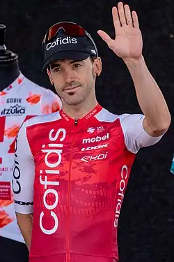 Ion Izagirre Insausti[7] (born 4 February 1989) is a Spanish professional road bicycle racer and cyclo-cross rider from the Basque Country, who currently rides for UCI WorldTeam Cofidis.[8] He is sometimes referred to as Jon Izaguirre,[9] to retain the correct pronunciation under Castilian orthography.[10]