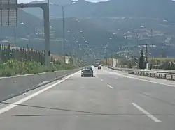 The A5 motorway, also known as the Ionia Odos (Greek: Ιόνια Οδός),[1][2] is a controlled-access highway in western Greece, which starts at Ioannina and it follows the western coastline of mainland Greece down to the Gulf of Corinth. At Rio, it crosses the gulf via the Rio–Antirrio bridge and is connected with the A8 at an interchange near Patras. The Patras - Pyrgos section of the motorway is now considered part of the A8 motorway and will eventually extend to Tsakona near Kalamata. Another extension north to Kakavia at the border with Albania, is in the planning stage.