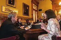 The Kosovo-Iowa National Guard Partnership is one of 25 European partnerships that make-up the U.S. European Command State Partnership Program and one of 88 worldwide partnerships that make-up the National Guard State Partnership Program.[2] The partnership was created on March 11, 2011 with the long-term goal of developing the Kosovo Security Force (KSF) and fostering mutually-beneficial interests across all levels of society. Establishing a strong relationship with the government of Kosovo, this partnership represents a critical step toward the reform development of Kosovo's security forces along Euro-Atlantic standards. The relationship lead to a sister state agreement.