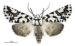 Ipana atronivea, commonly called the North Island lichen moth or North Island zebra moth, is a moth of the family Geometridae.[3] It is endemic to New Zealand and found only in the North Island.