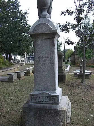 He is buried with his wife and parents at Oakland Cemetery. McDaniel Street which connects the Castleberry Hill and the Mechanicsville neighborhoods in Atlanta is named for him.[7]
