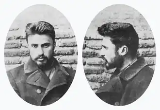 At a meeting of student protesters on 9 February 1902 Tsereteli was arrested; considered one of the most radical leaders, he was one of two students given a sentence of five years' exile in Siberia, the longest sentence given to the protesting students.[14] Though the government quickly backtracked and offered him the chance to serve it in Georgia, Tsereteli refused, seeing it as a pardon and considering "its acceptance as being in conflict with [his] views", as he explained in a letter.[15] This refusal, which was publicised with other exiles, cited social democracy as advocated by the Russian Social Democratic Labour Party (RSDLP), and effectively confirmed Tsereteli's support for the ideology by this point.[16] After declining the offer to return to Georgia, Tsereteli arrived in the village of Tulun in early 1902, located about 400 kilometres (250 mi) from Irkutsk, Siberia's administrative centre. However, by late summer he was permitted to move to Irkutsk.[17] It was during this exile that Tsereteli became familiar with the Russian Social Democrats, particularly Marxism; Tsereteli read Vladimir Lenin's What Is To Be Done?, though he disliked the view Lenin espoused. Indeed, the RSDLP would split into two main factions in 1903 over factional differences.[18]