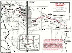 Map of the Iran–Soviet Union border; the entire eastern section now forms the Iran–Turkmenistan border