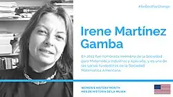 Irene Martínez Gamba (born 1957)[1] is an Argentine–American mathematician. She works as a professor of mathematics at the University of Texas at Austin, where she holds the W.A. Tex Moncrief, Jr. Chair in Computational Engineering and Sciences and is head of the Applied Mathematics Group in the Oden Institute for Computational Engineering and Sciences.[2]