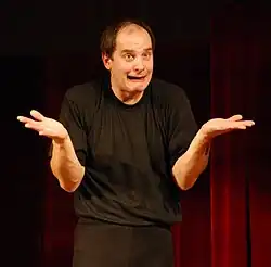 Ireneusz Krosny (born 1968) is a Polish actor and mime artist. Born in Tychy, between 1982 and 1992 he worked with three amateur pantomime groups, most notably, "Scena Pantomimy", founded and led by Krosny. He began his professional career in 1992 with the solo act "One Mime Theatre". He received several top awards at comedy festivals in Poland, and also had his own television shows there. He began his international career in 1997, performing throughout Europe as well as in North America and Asia. He was guest at the Chunchon International Mime Festival in South Korea and many other festivals, such as the "Lachmesse" in Germany, "Kaukliar" festival in Slovakia, "Bodylanguage Festival" in Sweden, the Edinburgh Fringe, and the "Festival du Rire" in Montreux, where he also won the Golden Rose of Montreux for the best international act. In the USA he received the Critic's Choice Award from The Chicago Reader: