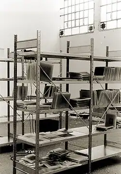 - Ou Topos – Wien (1989), Her earliest apartment installation recreated the situation of an aged man in a turn-of-the-century social housing project "Ou Topos" in Vienna, Austria. Austria. Focus of the installation was the bedroom that had been filled with thousands of tin cans of preserves, stacked on crude, wooden shelves, each wrapped in thick lead-foil and labeled with their date of expiry.[4] Visitors explored the space unsupervised on their own. "[The work] reveals the circumstances of others, without trespassing on their intimacy or dignity. In order to create an authentic representation, [Haeussler] has lived in this apartment for half a year. She immersed herself deeply into this unfamiliar space, absorbed the odors of the house, listened to its sounds and adapted her routines to those of the other inhabitants. When the apartment was opened to visitors, fiction and reality appeared superimposed".[5]