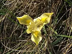 Sandy iris, or sand iris[2] (Iris arenaria), is a species in the genus Iris; it is also in the subgenus of Iris and in the Psammiris section. It is a rhizomatous perennial, from Central Europe, found in Hungary, Austria, Romania, Czech Republic and Ukraine. It has grass-like leaves, a short stem and pale yellow flowers. It has had a mixed origin and was once Iris humilis subsp. arenaria, a subspecies of Iris humilis (another Psammiris iris), until it was reclassified as a separate species. But many sources still state that it is either a synonym or subspecies of Iris humilis. It is cultivated as an ornamental plant in temperate regions.