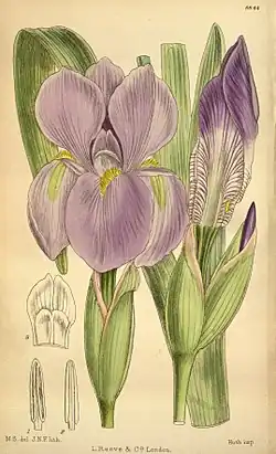 - ^ a b c d e f g h i j k l m n o p q r s t u v w x y z aa ab ac British Iris Society (1997) A Guide to Species Irises: Their Identification and Cultivation, p. 93, at Google Books
