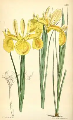 | Illustration of the Iris juncea by Walter Hood Fitch (Curtis’s Botanical Magazine) | |