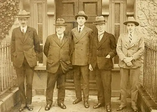 War broke out in the Irish Free State between pro and anti-treaty forces, causing a delay with the appointment of the Boundary Commission, which did not occur until 1924.[4] The Northern Ireland government, which adopted a policy of refusing to cooperate with the commission since it did not wish to lose any territory, refused to appoint a representative.[4][5] To resolve this the British and Irish governments legislated to allow the UK government to appoint a representative on Northern Ireland's behalf.[5] It has been argued that the person selected by the British government to represent Northern Ireland in the commission clearly represented the Unionist cause. British Prime Minister Baldwin is quoted on the selection of the Northern Ireland representative to the commission: "If the Commission should give away counties, then of course Ulster couldn't accept it and we should back her. But the Government will nominate a proper representative [for Northern Ireland] and we hope that he and Feetham will do what is right."[15] The commission thus convened, it began its work on 6 November 1924, based at 6 Clement's Inn, London, consisting of:[4][16]