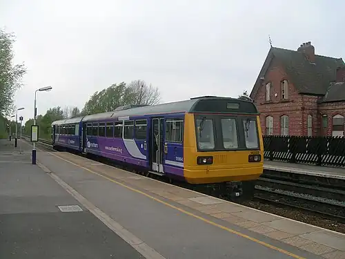 Monday to Saturday services are provided by Northern Trains and TransPennine Express, both on a basic hourly frequency. Northern local services run to Liverpool Lime Street and Manchester Oxford Road (though a few terminate at Warrington Central at peak times and in the evening), whilst TransPennine Express services run to Liverpool and Cleethorpes via Manchester Piccadilly, Sheffield and Doncaster.[6] The latter service was introduced at the December 2022 timetable change, replacing the former Northern Connect service to/from Manchester Airport.