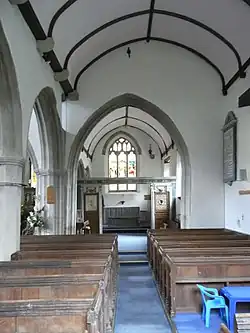The church was restored in 1878–79 under the direction of the Gothic Revival architect Sir T. G. Jackson.[5] The high altar has a reredos designed by F. C. Eden and made in about 1930.[5] Behind the altar of the south chapel is a screen also designed by Eden.[5]