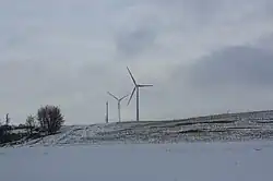 Iron Ridge is the community in Dodge County closest to the Butler Ridge Wind Farm, a windfarm that contains 36 turbines that are 300 feet wide and 260 feet tall.[10] It sits along the Niagara Escarpment, a ridge that originates in Ontario, runs through Wisconsin, and ends in Illinois.[11] It was initially developed by Midwest Wind Energy, and then acquired by Babcock & Brown, which carried it through construction.[12] After Babcock & Brown's liquidation in 2009, the wind farm was acquired by NextEra Energy Resources.[13][14] Part of the power is sold to WPPI Energy.[15]