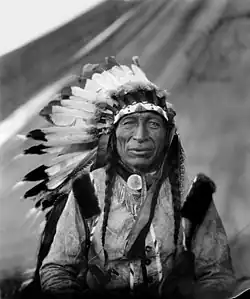 Iron Tail (Oglala Lakota: Siŋté Máza in Standard Lakota Orthography; c. 1842 – May 29, 1916) was an Oglala Lakota Chief and a star performer with Buffalo Bill's Wild West. Iron Tail was one of the most famous Native American celebrities of the late 19th and early 20th centuries and a popular subject for professional photographers who circulated his image across the continents. Iron Tail is notable in American history for his distinctive profile on the Buffalo nickel or Indian Head nickel of 1913 to 1938.