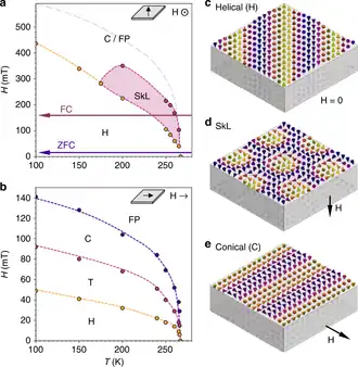 - ^ a b c Lebech, B; Bernhard, J; Freltoft, T (1989). "Magnetic structures of cubic FeGe studied by small-angle neutron scattering". Journal of Physics: Condensed Matter. 1 (35): 6105–6122. Bibcode:1989JPCM....1.6105L. doi:10.1088/0953-8984/1/35/010. S2CID 250793284.