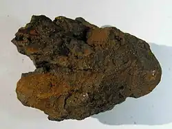 Iron ochre or iron ocher (Ancient Greek: ὠχρός, pale yellow, orange) refers to at least three iron ore minerals,[1]: 134 common abrasives and pigments with a red-brown or brown-orange hue and the powdery consistency of ocher, were known under such a trivial name. The term “iron ocher” was primarily used among mineral collectors, geologists, miners and representatives of related craft professions. It may refer to: