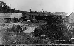 William Myles, "an Irish born coal dealer from Toronto", purchased a share of the Snowdon and began plans to build a railway connection to the Victoria, a little over 6 miles (9.7 km) from the smelters that had been built at Furnace Falls on the Irondale River in 1874.[4] Myles started construction in 1876[a] using squared logs supporting horse drawn sledges.[b]
