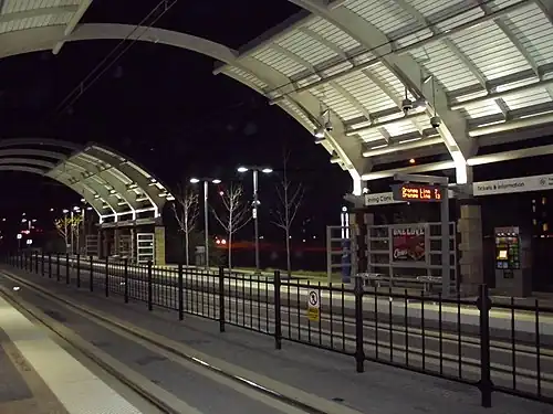 Irving Convention Center station is a DART light rail station in the Las Colinas development of Irving, Texas. It serves the Orange Line.[4] The station is located on a frontage road of Northwest Highway (Spur 348) and serves the development's Convention District, including the Irving Convention Center and Toyota Music Factory.