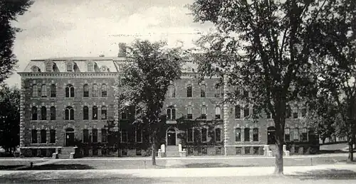 The first question put to the house in 1869 was "Resolved, the erection of a theatre was not in the interest of promoting correct morals within the University community." The answer was nodded in the affirmative.[3] The Irving was not to be the venue for the theatre arts at Cornell. Beginning in February 1870, the Irving and the Philaletheian held their annual contest against each other. That event has been noted as one reason the quality of debate was so high between 1869 and 1884.[6] Initially, the Irving's proceedings were held on Friday evenings at Deming Hall, on what is now the Ithaca Commons.[7] Special events were held at the Cornell Public Library around the corner. Later it shared Society Hall with the other literary societies at Cornell.