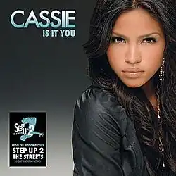 In 2007, it was revealed Cassie was back in the studio working on her sophomore album, with Leslie listed again as one of her collaborators.[4] It was also announced she had been cast on the sequel to the 2006 American dance film Step Up from Touchstone Pictures as Sophie Donovan, portrayed as a "triple threat, and supposed to be an intimidating character towards [the lead] Andie."[5][6] Cassie didn't plan being featured on the soundtrack, initially wanting to separate her music career from the acting,[7] but when approached for song submissions, she recalled during an appearance on MTV's Total Request Live to promote Step Up 2, she had been recording in Los Angeles before shooting the movie, and came up with "Is It You." "[It] is one of the most fun songs I've done, it's very pop, very different from what I'm normally doing. But, it's raw at the same time, and fits the movie perfectly," she elaborated.[5][8] The track became digitally available on November 13, 2007, with a CD single released on May 13, 2008.[9][10]