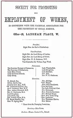 After coming to London in 1857, Craig was appointed to be the first female secretary to the National Association for the Promotion of Social Science, and held the position, despite enduring public scorn for several years due to her sex. Craig was one of the first staff members of the English Woman's Journal which routinely questioned customs such as opportunities for employment and the division of labour between men and women; actions for the women of the time were often restrained by notions of what was proper conduct for a "lady."[6] A friend and comrade was another major feminist figure, Elizabeth "Bessie" Rayner Parkes, whom Craig had met through her work with The Waverley Journal, an Edinburgh women's magazine.[13]