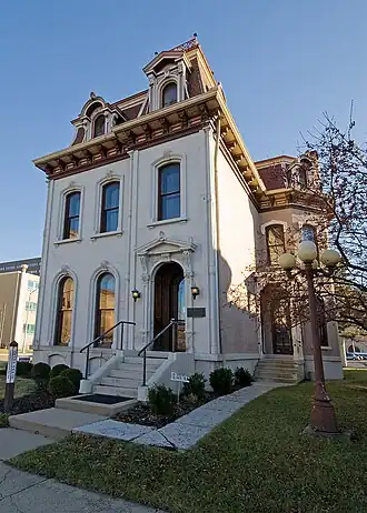 The Isaac Pollack House is a historic structure now located at 208 West Monument Avenue in Dayton, Ohio, United States. Built in 1876, this Second Empire house was originally home to the family of Isaac Pollack, a prominent Dayton businessman involved in the liqueur trade.[2] The walls are composed of a mixture of stone and brick with some wooden elements, resting on a stone foundation and covered with a slate roof.[3]