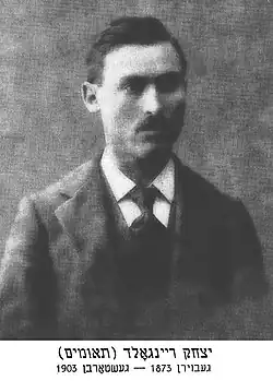 Isaac Reingold (Yitskhok, Itsik, יצחק רײנגאָלד) is the pen name of Isaac Toomim ( תּאומים יצחק) 1873-1903), a Russian-born American poet, lyricist, and singer.