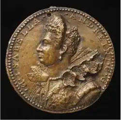 Isabella Andreini (born Isabella Canali; 1562 – 10 June 1604),[1] also known as Isabella Da Padova, was an Italian actress and writer.[2] Andreini was a member of the Compagnia dei Comici Gelosi, a touring theatre company that performed in Italy and France. The role of Isabella of the commedia dell'arte was named after her.[3]