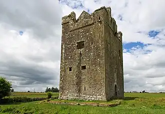 The tower house was built some time in the 15th century.[3] It belonged to the MacHubert Burkes, who claim descent from Hubert, son of Richard Óg de Burgh, a Hiberno-Norman knight of the 13th century. It later passed to the MacRedmonds, another branch of the Burkes (de Burgo, de Búrca).[4][5]