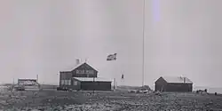 Planning of the reestablishment of Isfjord Radio started in 1945, following requests from the Polar Institute and the Norwegian Meteorological Institute to the Ministry of Trade and Industry. The Polar Institute was given the responsibility for building the station, while the Telegraphy Administration was given the responsibility for the technical equipment. Transport of equipment started on 29 June 1946 and arrived at Kapp Linné on 11 July. Construction started on 15 July and was at first led by Gunnar Horn; he died after only a few days and the work was subsequently led by Reidar Lyngaas.[8] Twenty-seven men worked on the construction, of which nineteen lived in a barracks and the rest in tents. Seven soldiers and a Jeep were used to dig down 7.5 kilometers (4.7 mi) of cable.[9] The main building was a copy of the pre-war building and was built on the foundation, which had survived the war. It was supplemented with a radio building and a barracks for 21 people. The slipway and boathouse survived the war.[10] The new station was equipped with radio bearing.[11]