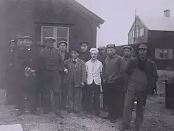 The Polar Institute was responsible for planning the building and appointed Anders Kristian Orvin to be in charge. The Telegraphy Administration was responsible for the technical equipment. The transmission and lighthouse equipment was shipped from Oslo on 24 June, arrived 8 July and was unloaded by 13 July. Construction was carried out by twelve men, working eleven-hour shifts, allowing completion on 13 September. The work included a radio transmitter, three buildings, a boathouse, a forge, a slipway and three lighthouses—at Kapp Linné, Festningen and Vestpynten. The main building was 63 square meters (680 sq ft), with the smaller buildings being 47 and 38 square meters (510 and 410 sq ft).[2] The transmitter was a Telefunken telegraphy and telephony transmitter with a 300-watt capacity. It was decided that support for radio bearing would not be installed,[3] as it would cost NOK 5,000. The station opened on 13 November 1933; at first it had three employees, later four. The crew were hired for one year at a time, with the telegraphist normally taking over the role as manager the following year.[4] A fatal accident occurred on 10 October 1939, when Ole Sivertsen was hit in the head by a crank which had loosened from a crane.[5]