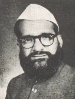 Ishaq Sambhali (also known with his honorific Maulana) was an Indian politician, freedom activist, journalist and the member of parliament from Amroha parliamentary constituency of Uttar Pradesh.[4] He was imprisoned twice during the resistance movement of India. He was associated with Communist Party of India, and served as the parliament member twice during the fourth lok sabah and fifth lok sabah elections.[5]
