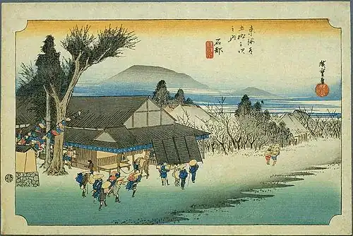 ![]() Hiroshige's print of Ishibe-juku, part of the Hōeidō edition The Fifty-three Stations of the Tōkaidō series | |||||