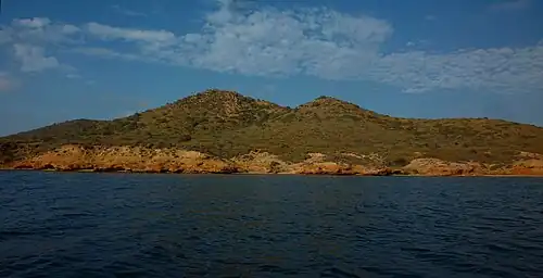 Isla Mayor (also called Isla del Barón) is a Spanish island located almost at the center of the Mar Menor, in the municipality of San Javier in the Region of Murcia. As its name indicates, it is the largest island both in that inland sea and in the entire Murcian region (93.8 hectares). It is an extinct volcanic cone, which gives the island its distinctive conical shape (104 meters in altitude) and roughly circular perimeter. The island is private property.[1] It takes the name Isla del Barón from the Barón de Benifayó, who built a Neo-Mudéjar-style palace on the island, known as "the baron’s house."
