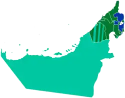 The Bani Yas, which today form the Emirate of Abu Dhabi and Emirate of Dubai, traditionally adhere to the Sunni Maliki school of Islamic jurisprudence from the Uyunid dynasty, who spread the Maliki school by the command of Sheikh Abdullah bin Ali Al Uyuni.[3] The four emirates of Sharjah, Umm al-Quwain, Ras al-Khaimah, and Ajman follow the Hanbali school, and the Emirate of Fujairah follows the Shafi'i school.[4]